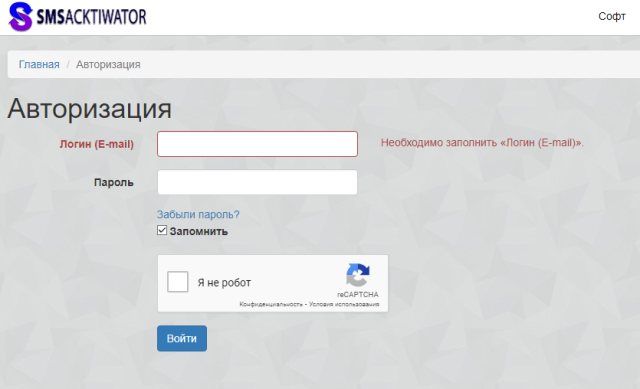 1. Зарегистрируйтесь на сайте https://smsak.org/ или авторизуйтесь в личном кабинете, если у вас уже есть аккаунт.